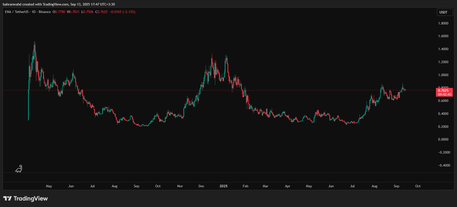 - ENA در محدوده قیمتی متوسط باقی میماند و تنها در دورههای صعودی بازار رشد میکند.