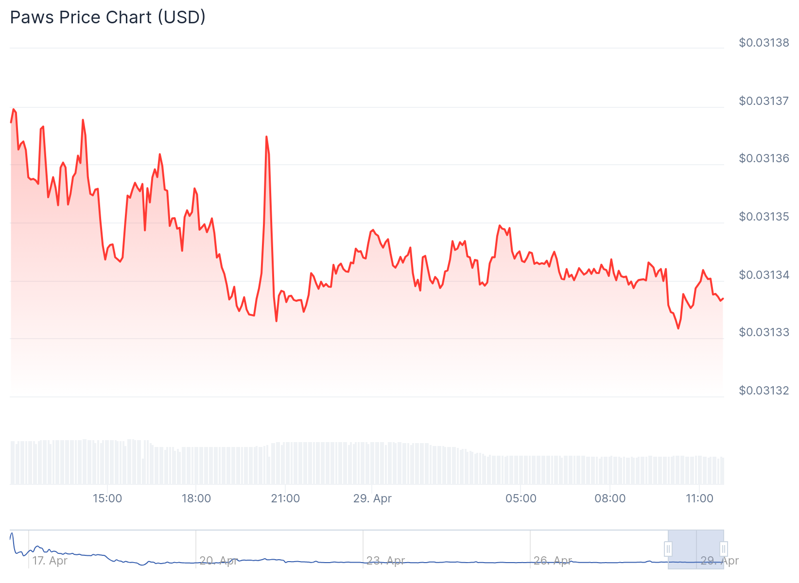 با توجه به اطلاعات Coingecko عملکرد توکن PAWS در زمان نگارش مقاله (29 آوریل) به این صورت است: