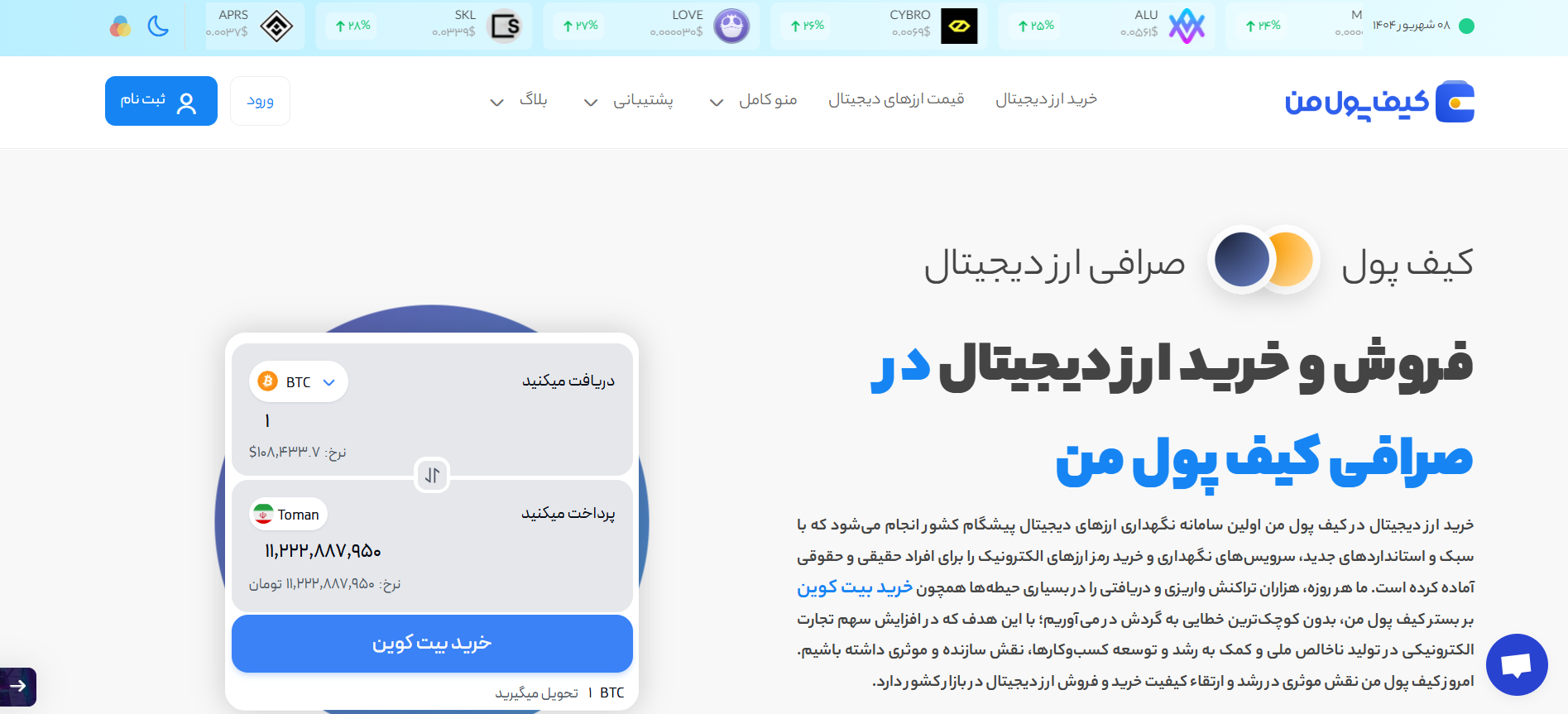 صرافی کیف پول من یکی از صرافیهای ارز دیجیتال ایرانی است که در سال ۱۳۹۸ فعالیت خود را آغاز کرد. این صرافی در حال حاضر یکی از محبوبترین صرافیهای ارز دیجیتال در ایران است و حجم معاملات روزانه بالایی دارد.