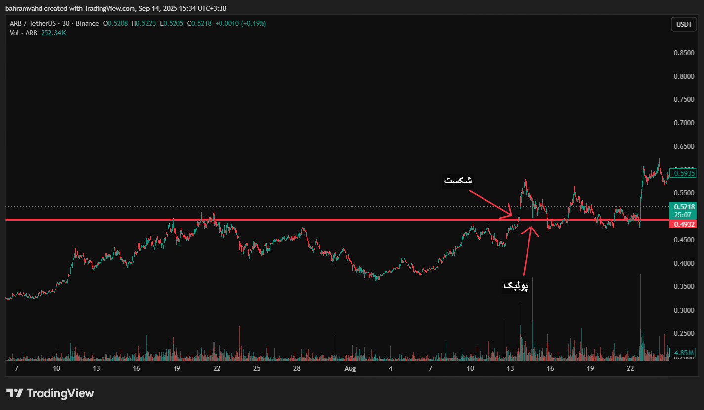 - ورود در پولبک بعد از شکست: یکی از مطمئنترین روشها این است که بعد از شکست، صبر کنید تا قیمت دوباره به سطح شکستهشده برگردد و آن را تست کند. اگر سطح جدید حفظ شد، ورود در این نقطه ریسک کمتری دارد.