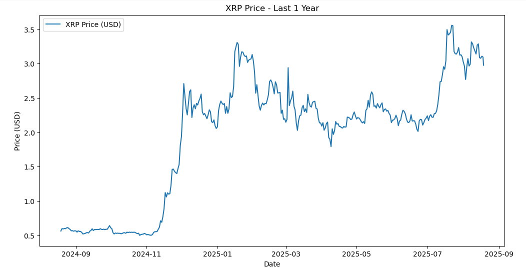 قیمت ریپل (XRP) در یک سال گذشته نوسانات قابل توجهی را تجربه کرده است. بررسی نمودار قیمتی نشان میدهد که XRP سال را در محدوده ۰.۵ دلار آغاز کرد و در چند مقطع کلیدی جهشهای پرقدرتی داشت. یکی از مهمترین این جهشها در دسامبر ۲۰۲۴ اتفاق افتاد که همزمان با افزایش حجم معاملات، قیمت توانست سقفهای بالاتر را لمس کند. همچنین در جولای ۲۰۲۵ با انتشار اخبار مثبت از روند پرونده حقوقی ریپل در آمریکا، بار دیگر شاهد رشد پرشتاب قیمت بودیم.
