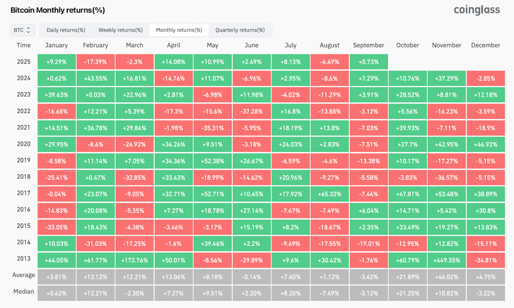 فشار فروش و احتمال اصلاح: بر اساس گزارش Blockworks، پس از رسیدن بیتکوین به اوج تاریخی ۱۲۴ هزار دلار در ماه اوت، قیمت این ارز در اولین هفتهٔ سپتامبر کاهش یافت و به حدود ۱۰۷ هزار دلار رسید.