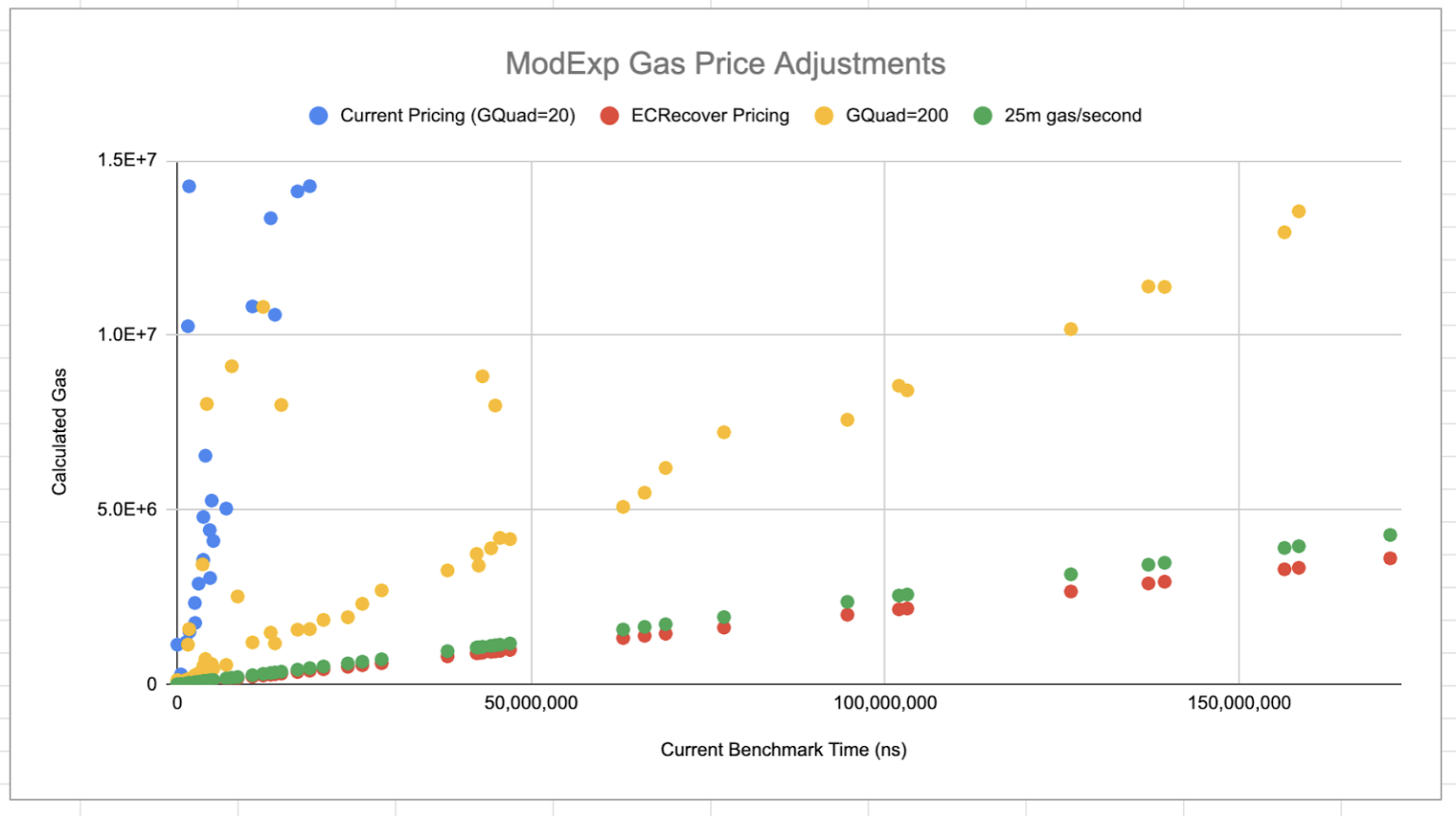بوترین میگوید modexp تا ۵۰ برابر سنگینتر از عملیاتهای معمولی است و همین موضوع سرعت تولید اثباتها را پایین میآورد؛ در نتیجه رولآپها و سیستمهای مقیاسپذیری اتریوم به خوبی نمیتوانند رشد کنند. او حتی گفت که بابت طراحی این ویژگی «شرمنده است» و حالا معتقد است باید حذف یا با نسخه سادهتری جایگزین شود، حتی اگر اجرای آن گرانتر شود.
